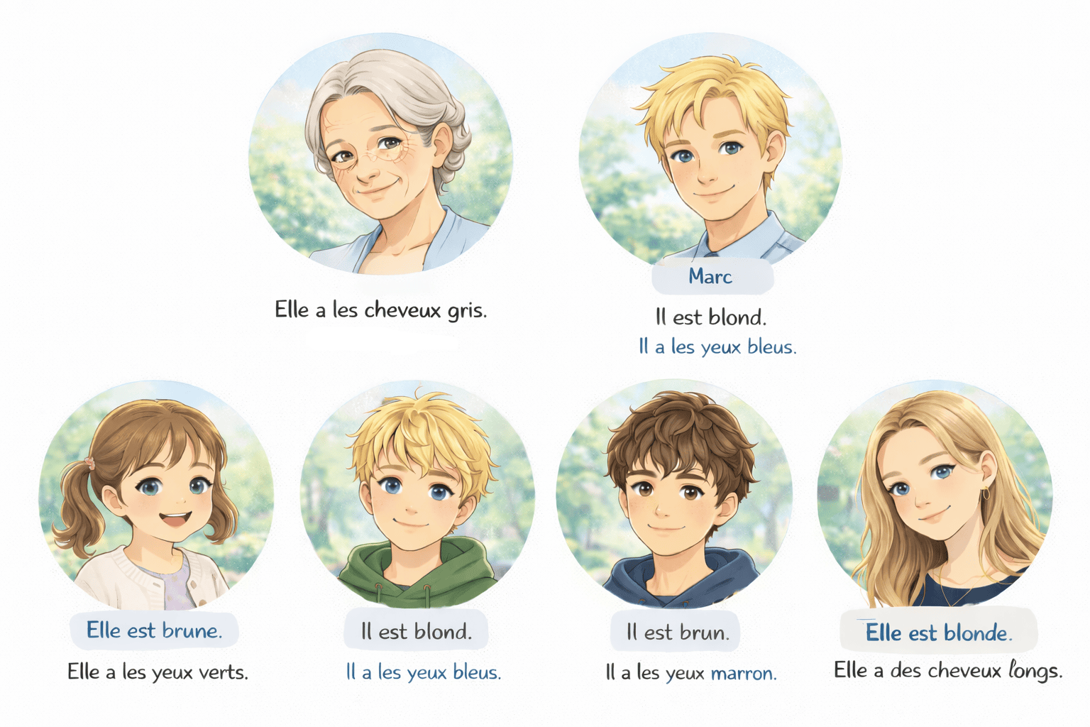 What you'll learn: French adjectives change their ending based on whether the person you're describing is masculine/feminine, singular/plural. 'Grand' → 'grande' → 'grands' → 'grandes'. Miss the agreement and it sounds off.