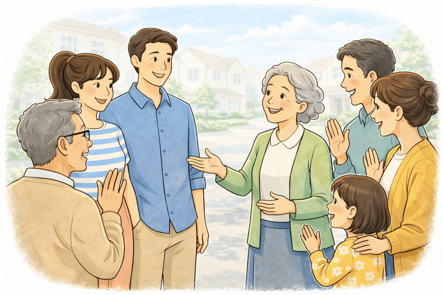 The next day, Mme Dupont introduces Lina and Nil to the neighbors. Everyone talks about where they come from.